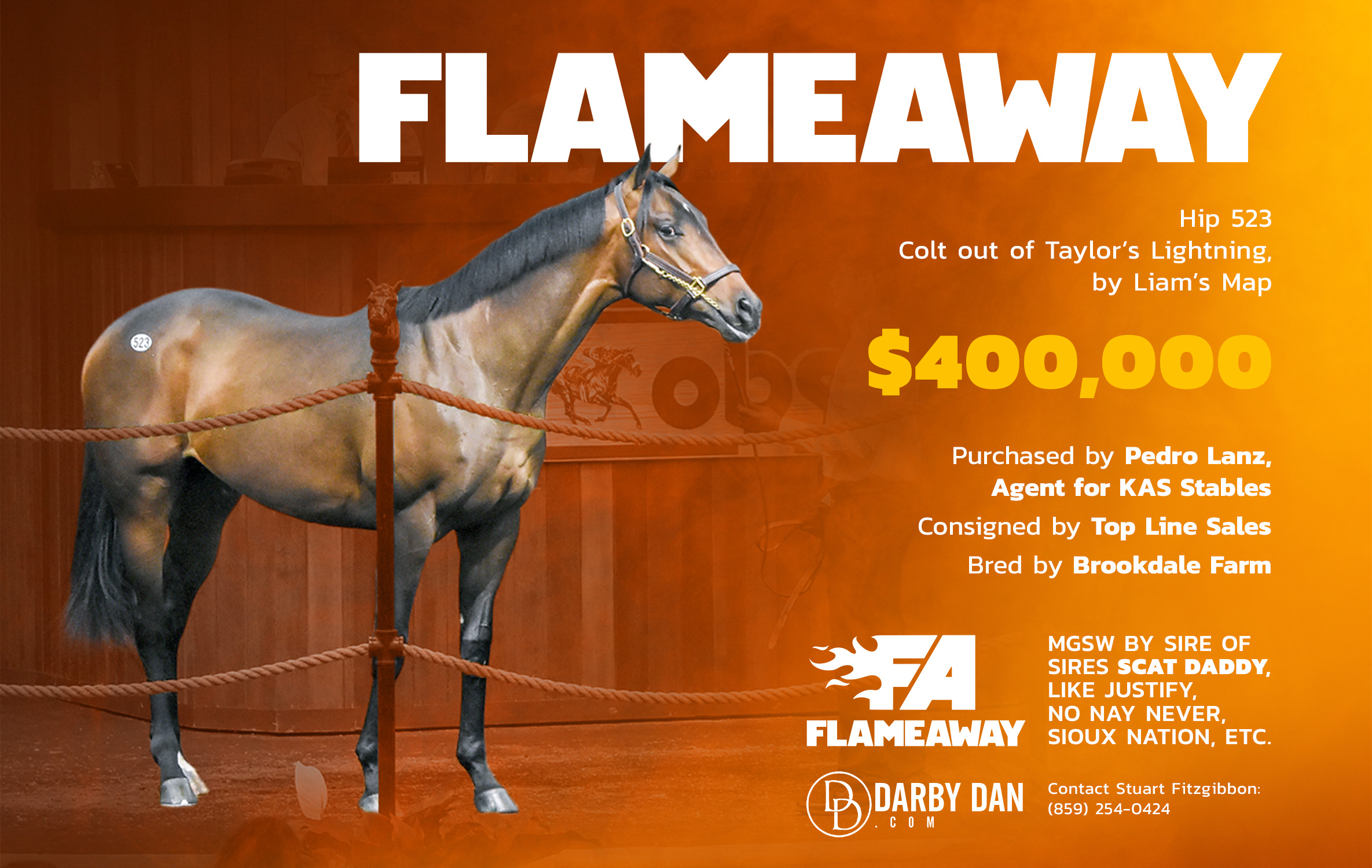 - 2025 racing includes Dubai Golden Shaheen (G1) winner DARK SAFFRON; Clasico Arturo Lyon Pena (CHI-G1) and Clasico Cotejo de Potrancas (CHI-G3) winner AMADA MILA; Kentucky Turf Sprint (G2) winner, $250,000 KY Downs Preview Turf Sprint S. winner and William Garret H. third BEAR RIVER; Clasico German Ruiz B (PAN-G2) winner and Clasico Oscar y Manuel Grimaldo (PAN-G2) winner FLIGHT MOON; Clasico Julio Subercaseaux Browne (CHI-G3) and Clasico Coronel Santiago Bueras winner and Clasico Cotejo de Potrancas (CHI-G3) runner-up REITHA; West Virginia Triple Crown Nutrition Breeders’ Classic S. winner and John McKee Memorial S. second EDY’S FLAME; Main Line S. winner and Beyond The Wire S. third BURNER ACCOUNT; Acadiana S. winner FAST FLAME; Limestone S. second DREAMAWAY; $150,000 Schuylerville S. second and $150,000 Bolton Landing S. third My Sweetheart; $100,000 Polynesian S. second and $100,000 Rumson S. third Northern Flame; Mine That Bird Derby second Wow That’s Hot; Clasico Seleccion de Potrillos (CHI-G3) and Clasico Raul Spoerer Carmona y Raul Spoerer Urrutia second Bacan Soltero; Blue Hen S. second Sassy Fox; $100,000 King Corrie S. second and $125,000 Woodstoke S. third Incoming; Musical Romance H. third Fantastic Flame; etc.